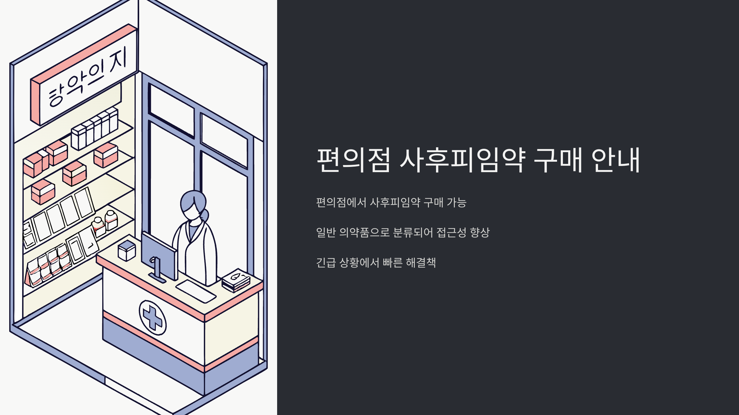 편의점에서 사후피임약을 판매하는 이유는 사후피임약이 이제 더 이상 처방전 없이 구매할 수 있는 일반 의약품으로 분류되었기 때문이다. 이는 긴급히 피임을 해야 하는 상황에서 더 빠르게 해결할 수 있도록 하기 위한 조치로, 의료기관을 찾지 않고도 편리하게 구매할 수 있는 방법을 제공한다.